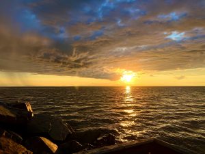 «Coucher de soleil sur le quai du village» (quai secteur rue de la Grève)